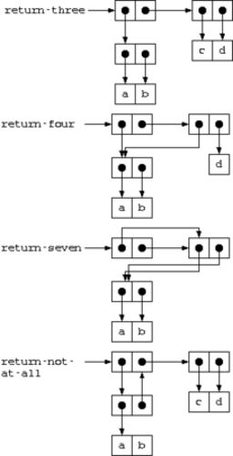 pair の数が 3 個なのにも関わらず,count-pair の返り値が 3,4,7,制御を返さないという 4 パターンの引数を考えろという話. (define (count-pairs x) (if (not (pair? x)) 0 (+ (count-pairs (car x)) (count-pairs (cdr x)) 1))) 最初勘違いしててとま…